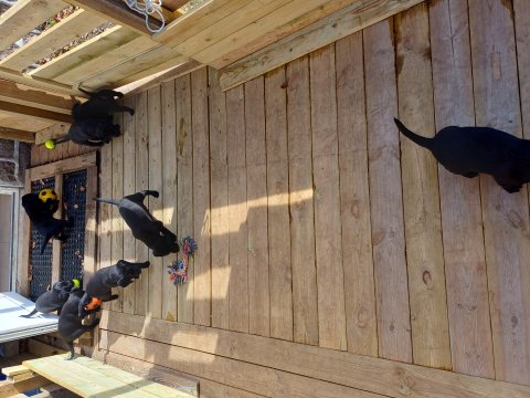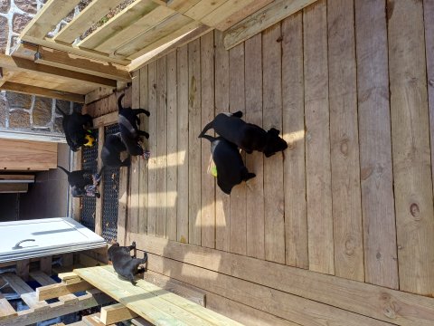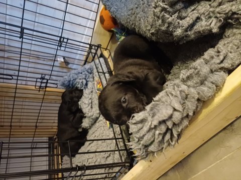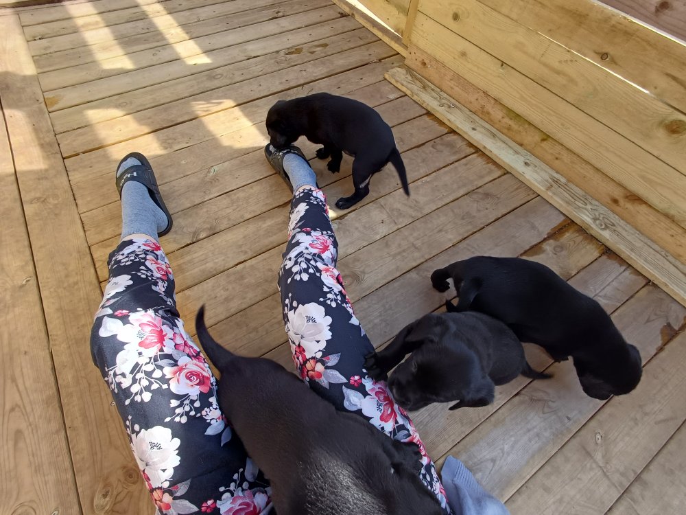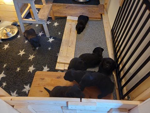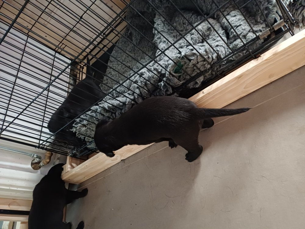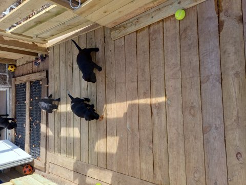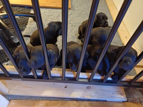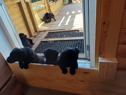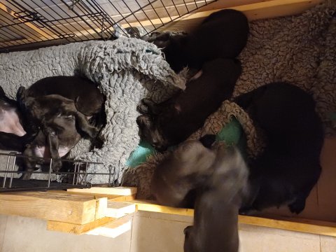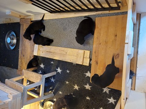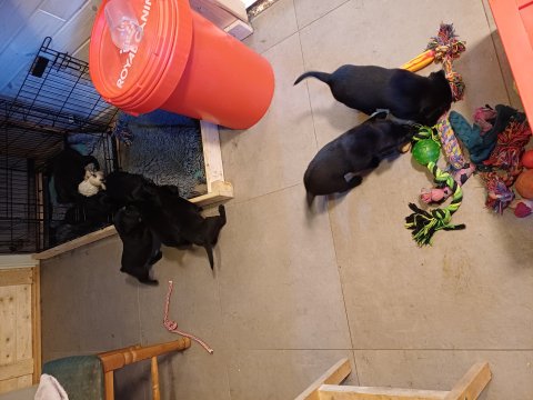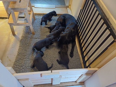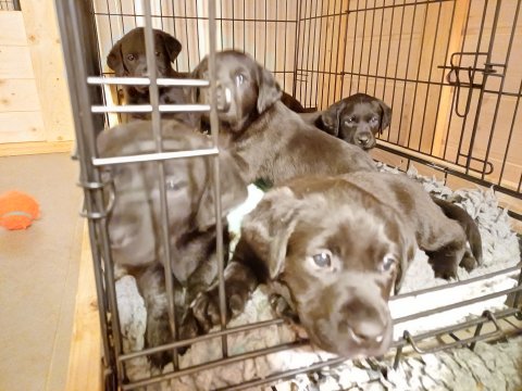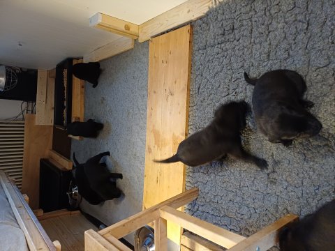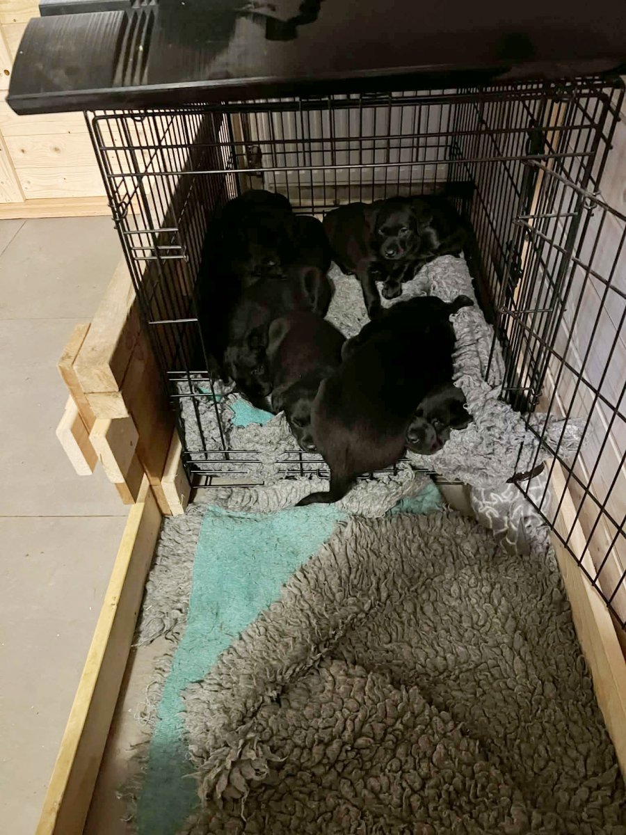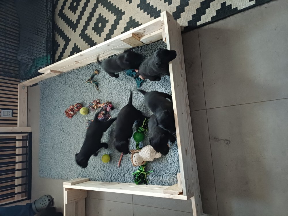 Uge 5 i hvalpekassen Først på uge blev hvalpe chippet, så vi har styr på dem. Hvalpene har i denne uge været lidt i "hvalpebørnehave", de er meget nysgerrig på de nye ting og omgivelser. De kommer rigtig gerne hen til lågen for at hilse på de andre hunde og os.De er så småt begyndt at bruge "hunde WCét" til det store, sjovt at se dem løbe ud af hvalpehule og hen i området med "hunde WCét". I hvalperummet sker der også mere og mere, der bliver prøvet kræfter, så nogle gange kan man høre nogle høje hyl. General er de nogle rigtig søde hvalpe der opfører sig som små hvalp skal, de prøver kræfter med hinanden, spiser, og sover. De nyder at ligge i deres hvalpekasse hule, hvor de sover næsten hele natten. Kate elsker at ligge inde sammen med dem, men nogle overlader hun dem til mormor Amy
