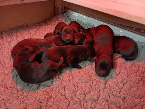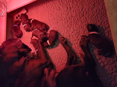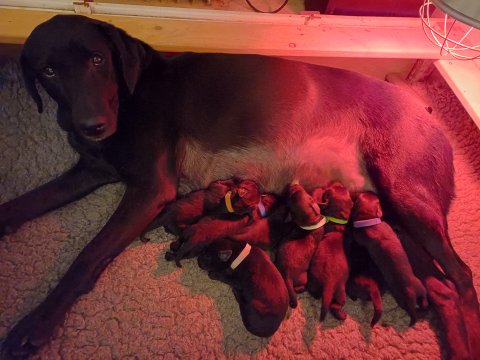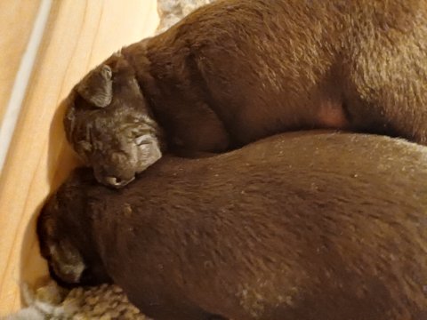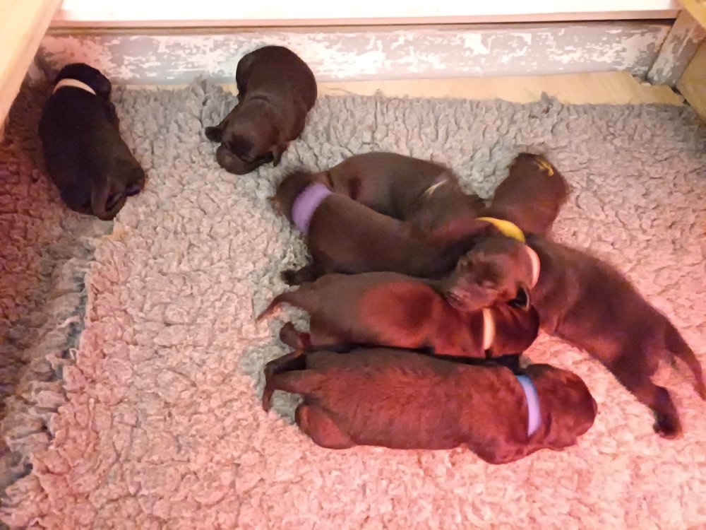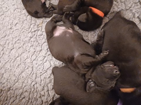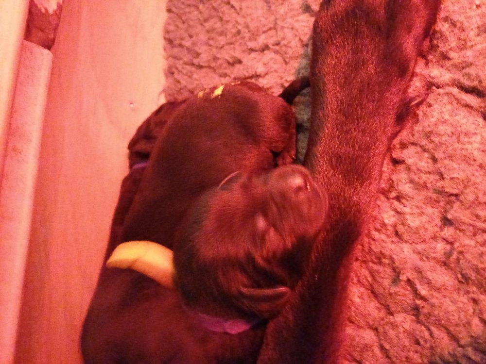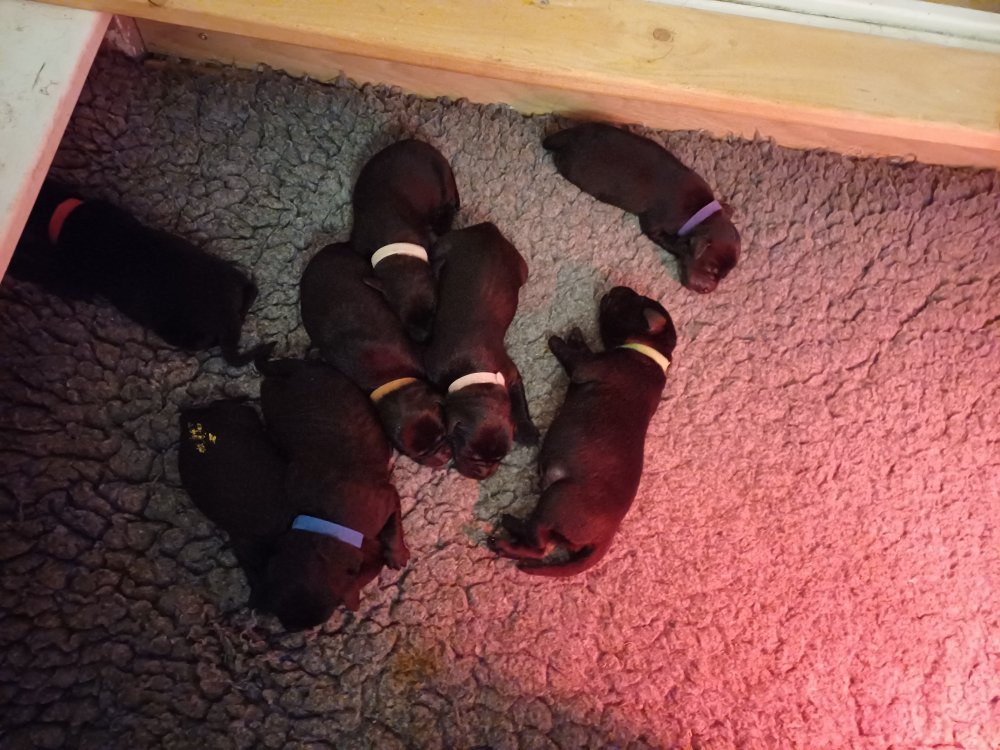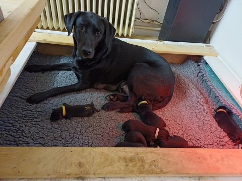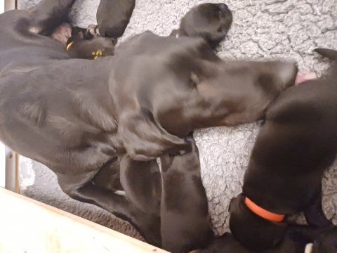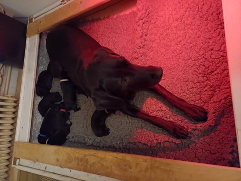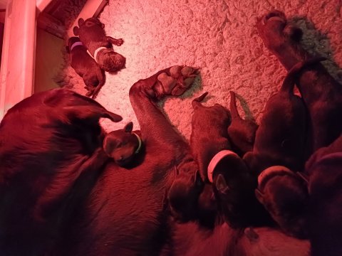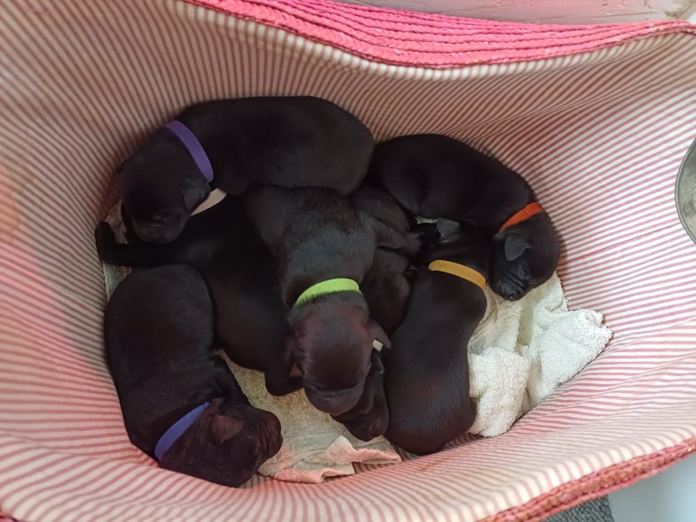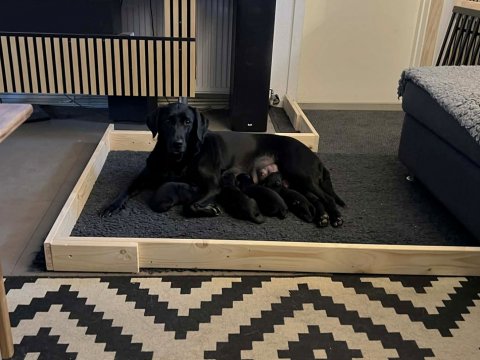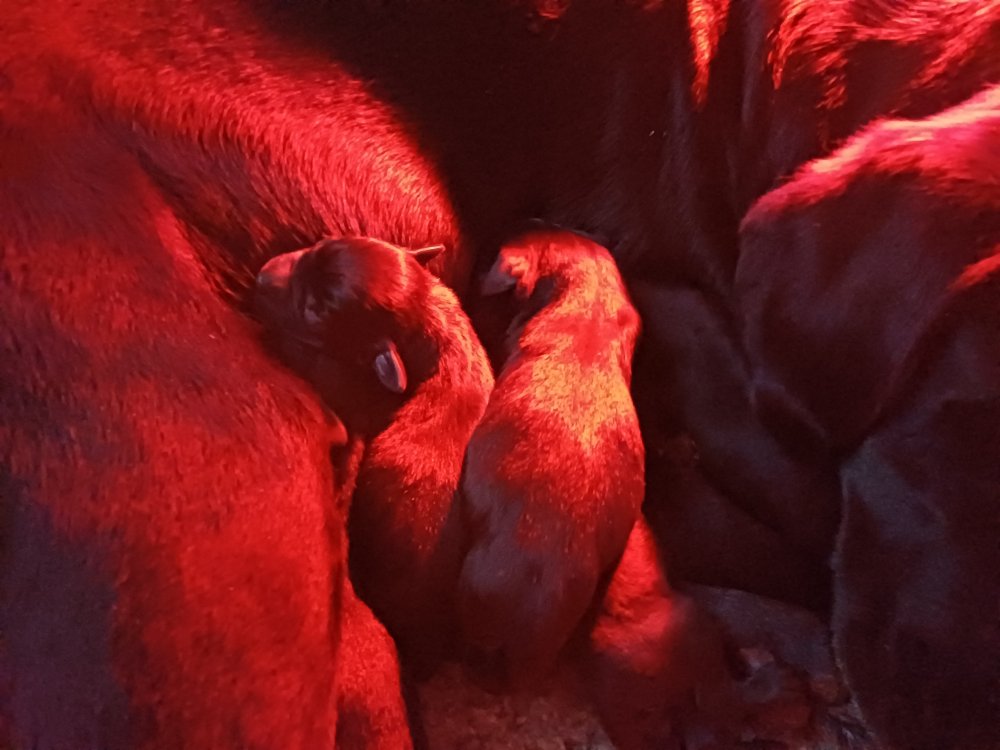 Vi er også begyndt at kunne ane små sprækker ved øjnene, så det bliver så spændende at se de små øjne, når de kommer frem. Kate er en rigtig god mor og hun nyder livet i hvalpekassen, hvor tiden stadig væk går tiden med at spise og sove. De andre hunde er tit inde og hilse på. Kate kommer også ind til os andre i stuen, når der ro i hvalpekassen for være sammen med resten af familien.