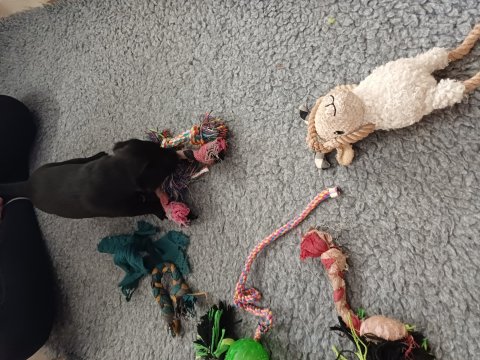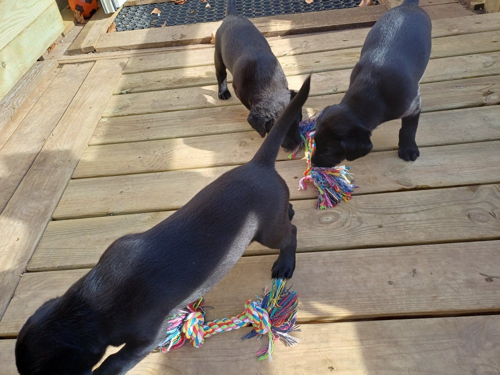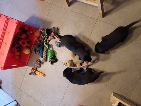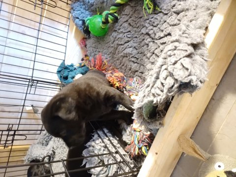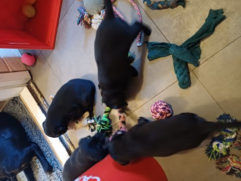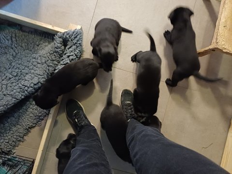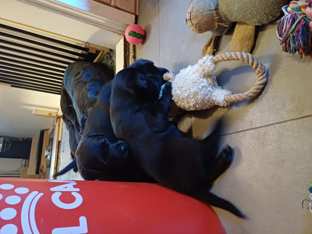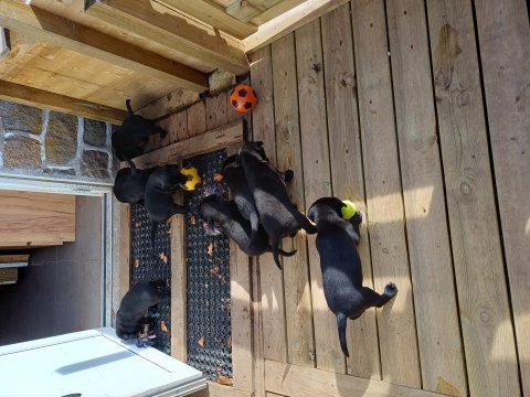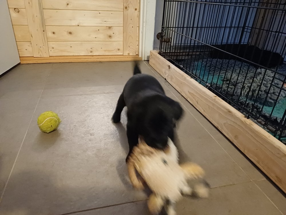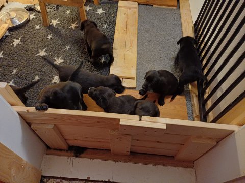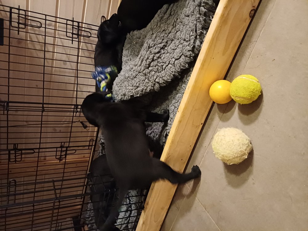 Uge 6 i hvalpekassen Hvalpene er nogle rigtig søde, nysgerrige og aktive hvalpe, der rigtig gerne vil snakke med. De har helt styr på hvornår der er spisetid og kommer så snart der bliver fløjtet. De får stadig lidt fra Kate´s mælkebar men det er i hold, da det er lidt hårde ved hende. Mormor Amy, tager sige af hvalpehyggen. Her i weekenden lukkede vi af til hvalperummet og hvalpene er flyttet ud i gangen og fået mere plads. De bruger nu baggangen som deres toiletområde og det er de rigtig gode til. Hvalpene har i denne uge været ude når vejret har været til dette, de nyder at komme udenfor også i " hvalpebørnehaven" og elsker at finde noget de kan tage i munden. De har fundet ud af at de kan se indtil os i stuen også kan de hilse på de andre hunde.