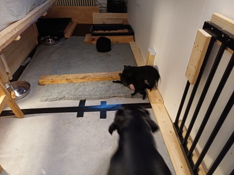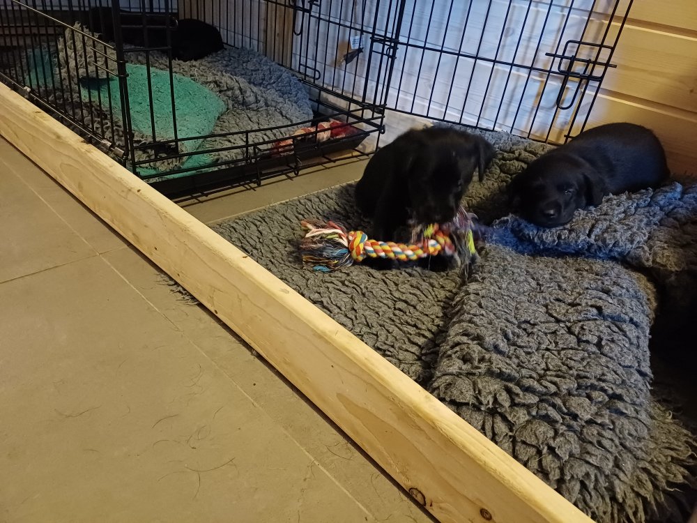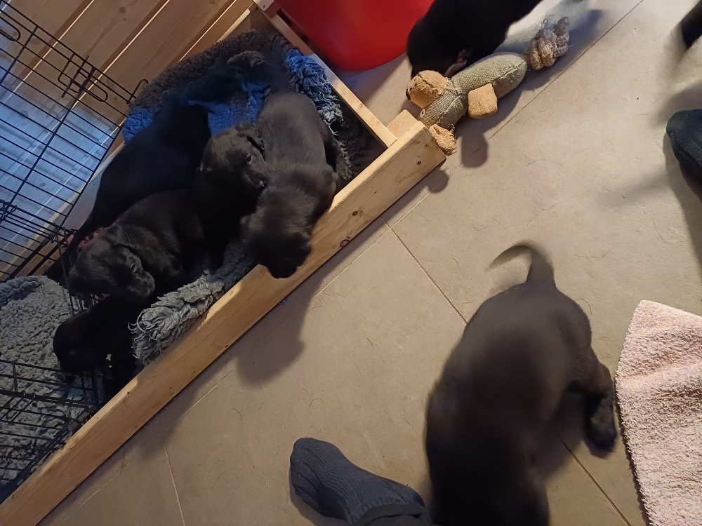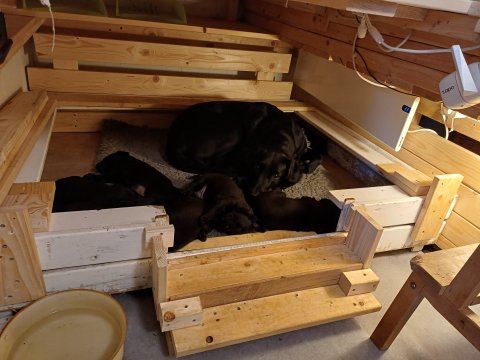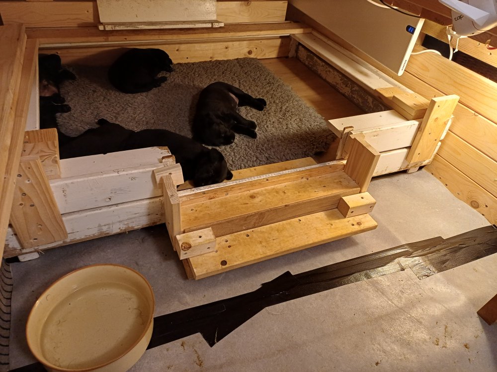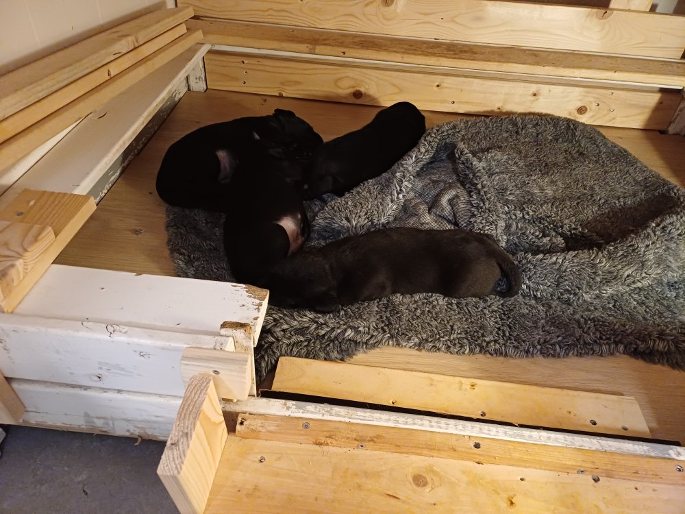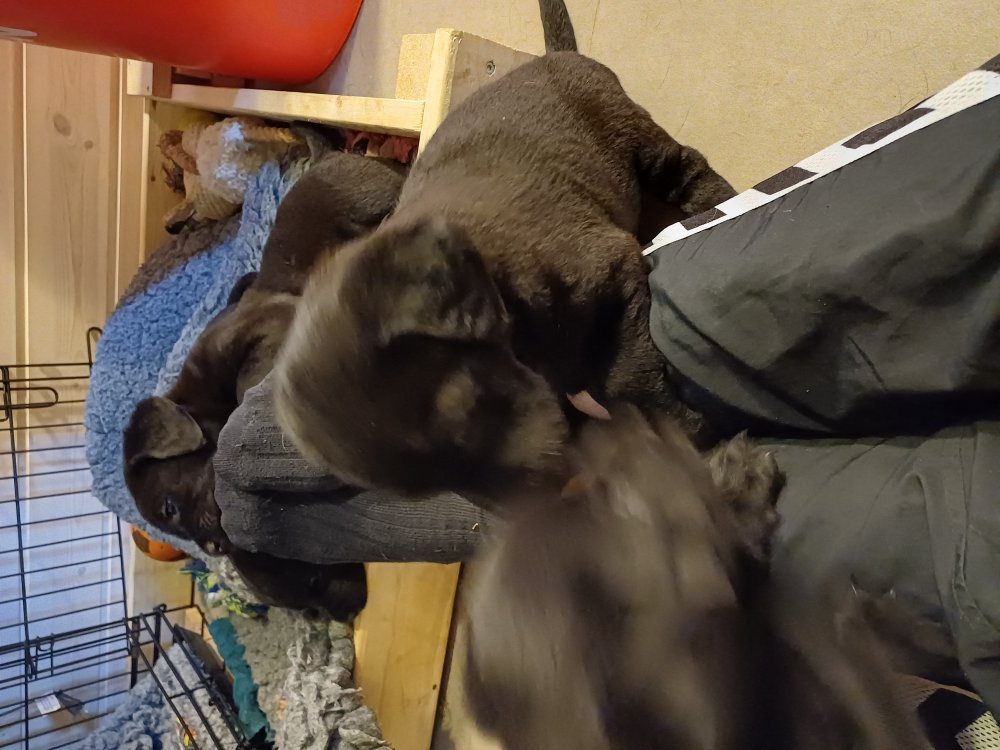 Uge 3 i hvalpekassen I denne uge er der sket meget med hvalpene. Den dag de blev 2 uger, kunne vi se øjne på dem alle.De er begyndt at bevæge sig rundt i kassen næste som rigtig som hunde, nogle af dem er også begyndt at øve deres kald, nogle gange kommer der noget der lidt et bjæf/gø 😊.De har også opdaget de andre hvalpe i kasse, så de er begyndt at "slås" med hinanden og med deres mor. .Hvalpene er begyndt at kræve lidt mere plads, så de flyttet udfra "hvalpehul uden bordet og i rummet så der plads til at nyde Kate´s mælkebar